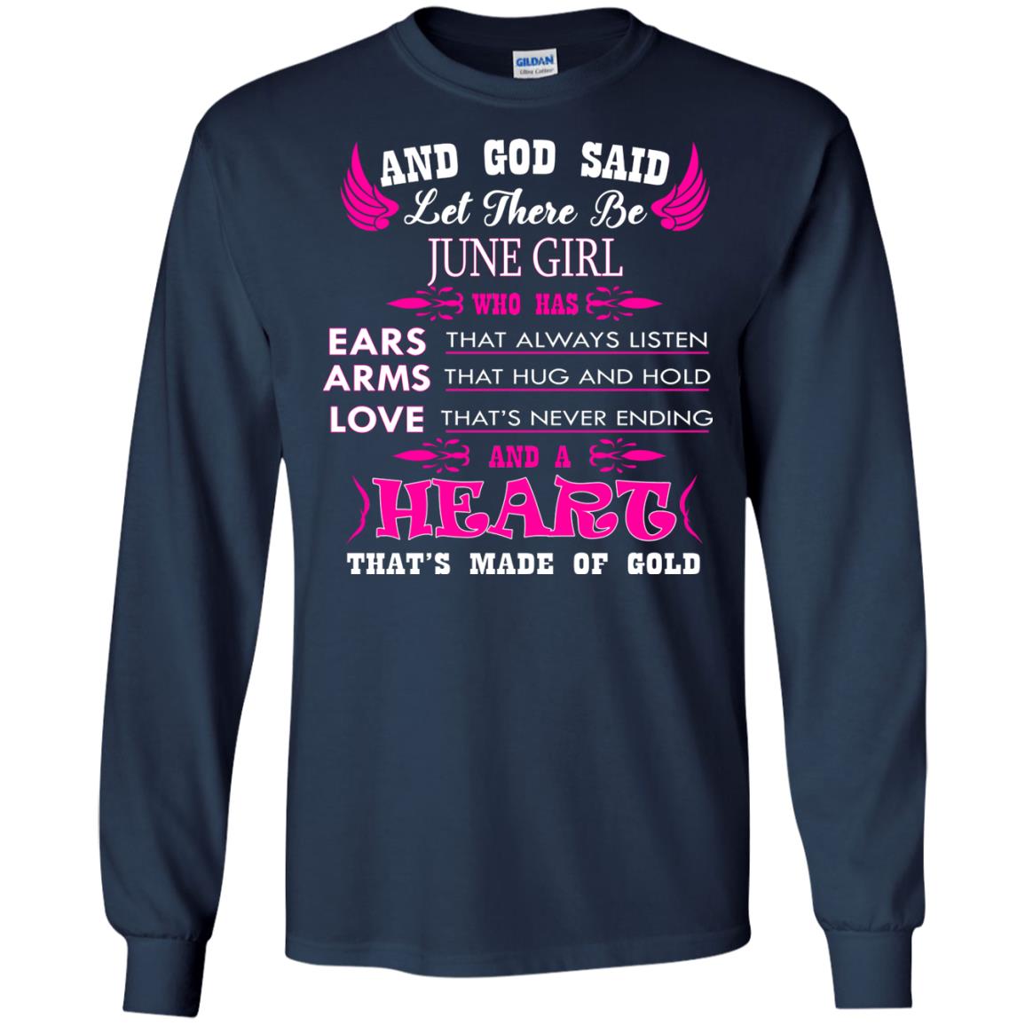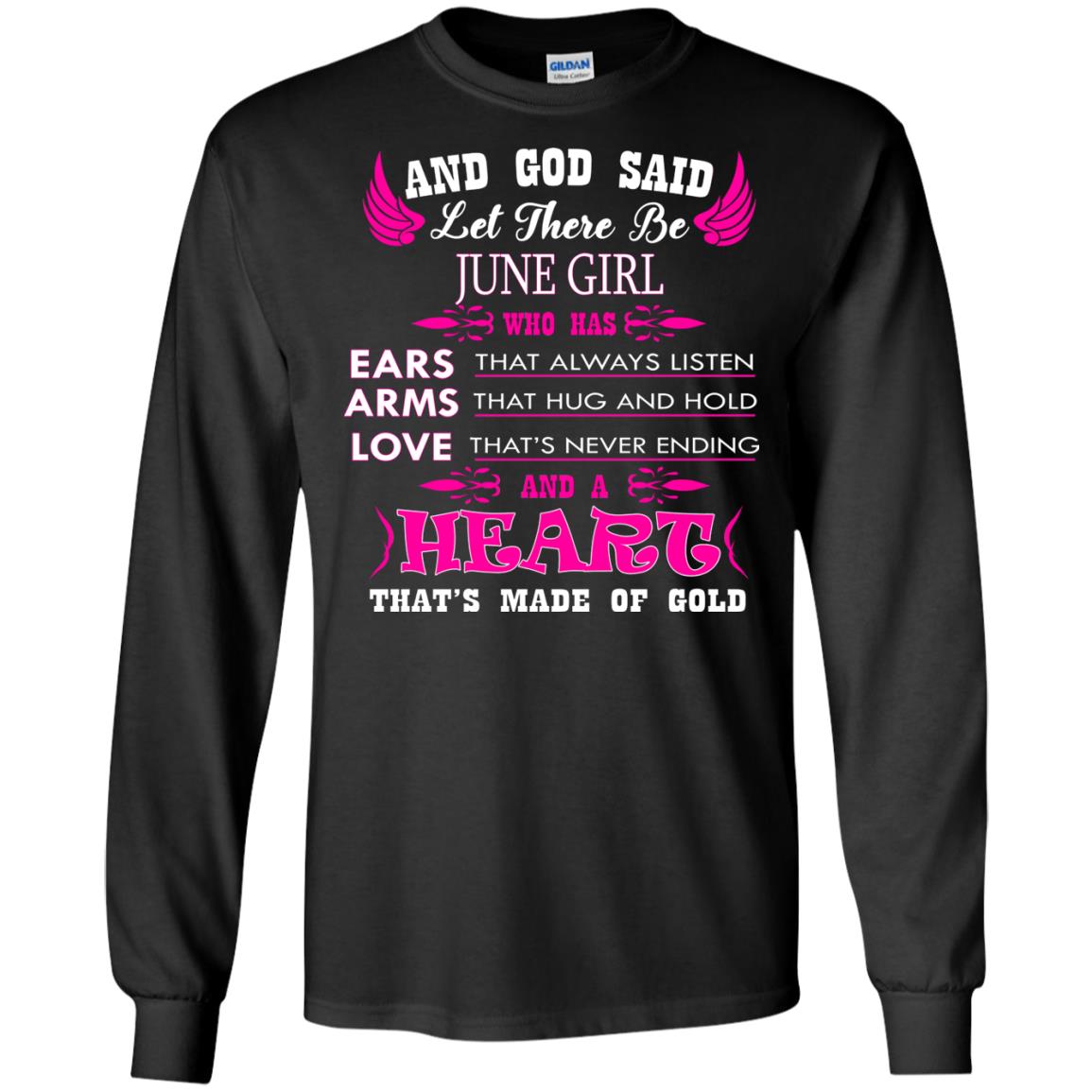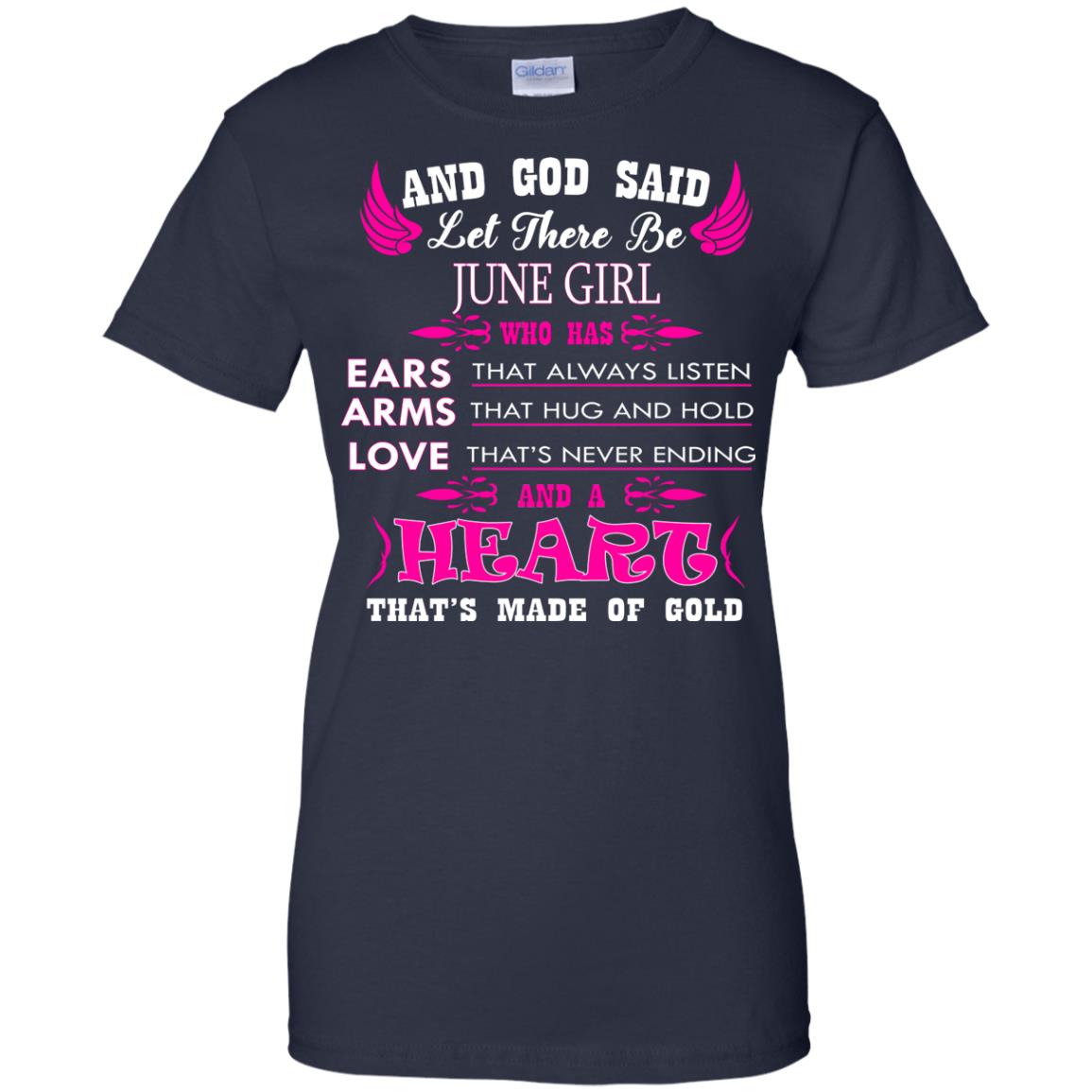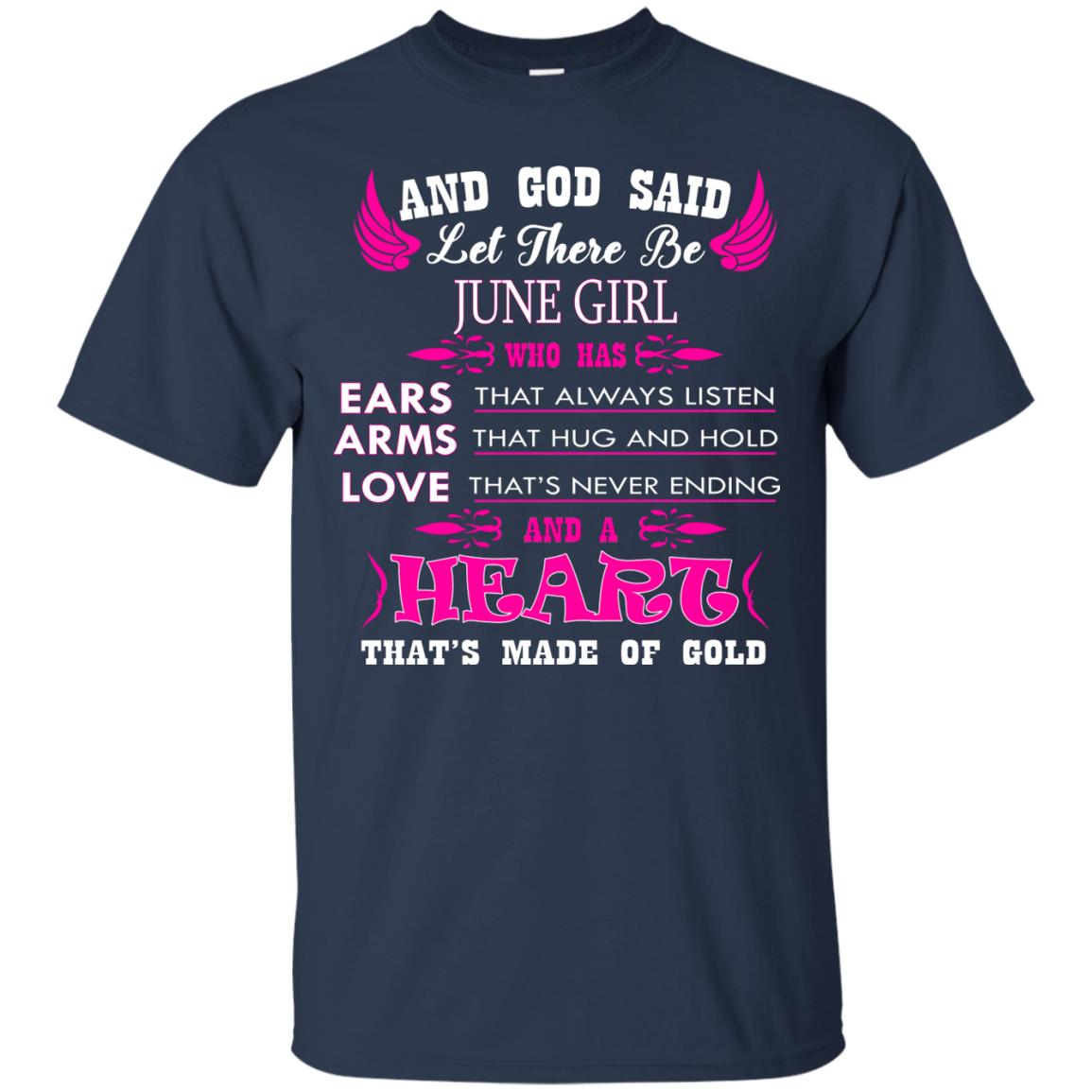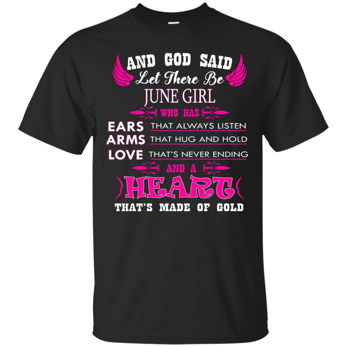 “And God said let there be June Girl who has Ears that always listen, Arms that hug and hold, Love that’s never ending and a Heart that’s made of gold.” In need of June birthday gifts? Look no further. This birthday shirt for women is sure to please.