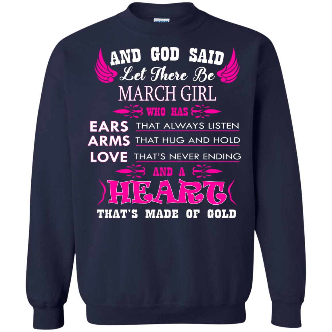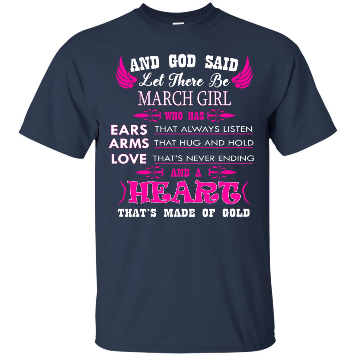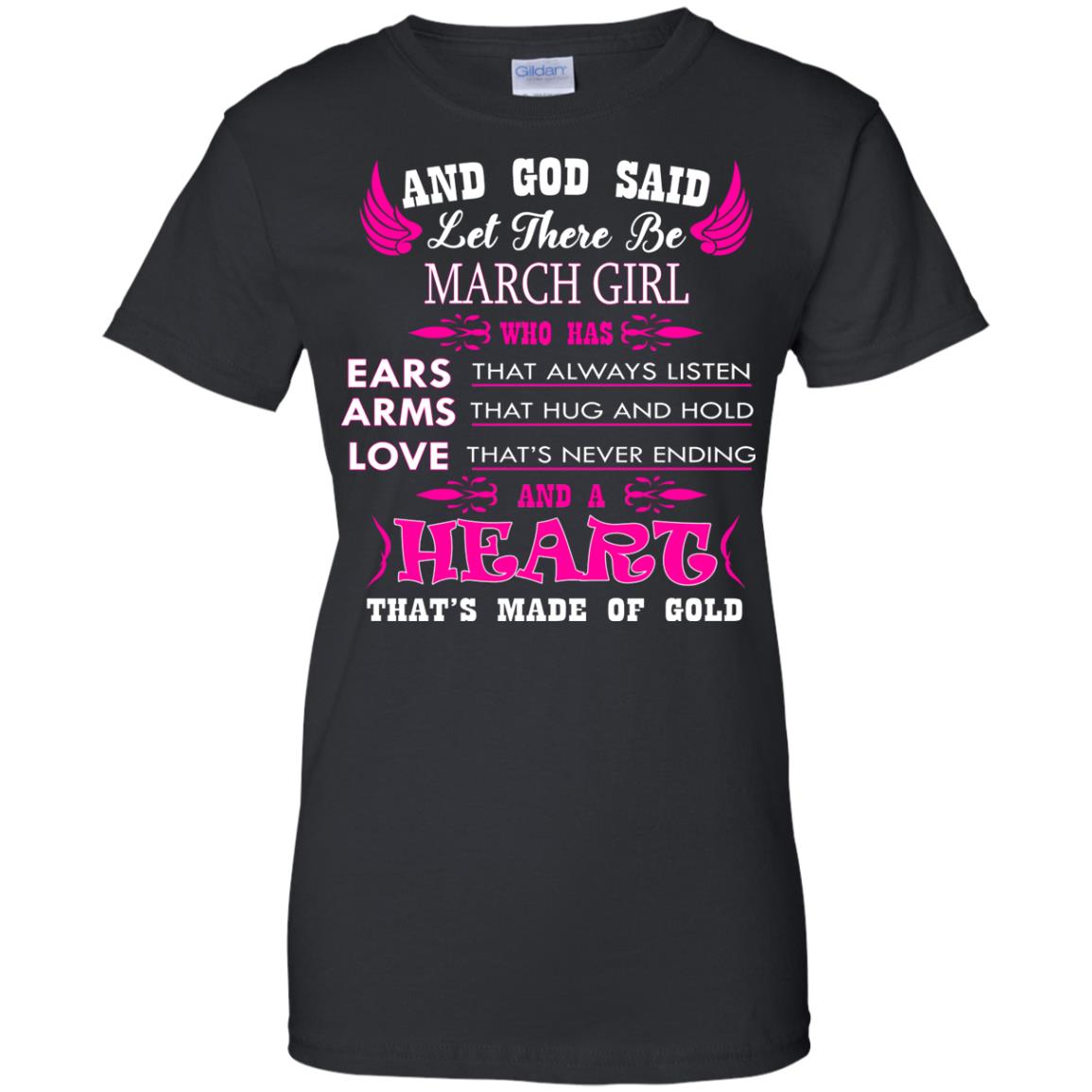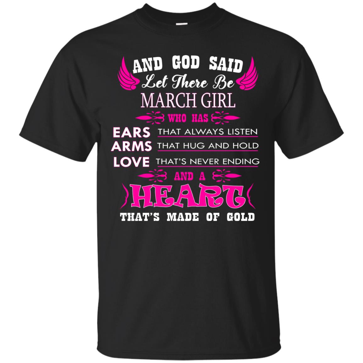 “And God said let there be March Girl who has Ears that always listen, Arms that hug and hold, Love that’s never ending and a Heart that’s made of gold.” In need of March birthday gifts? Look no further. This birthday shirt for women is sure to please.